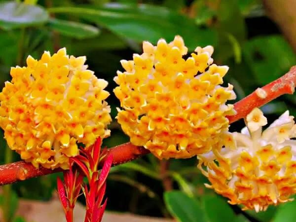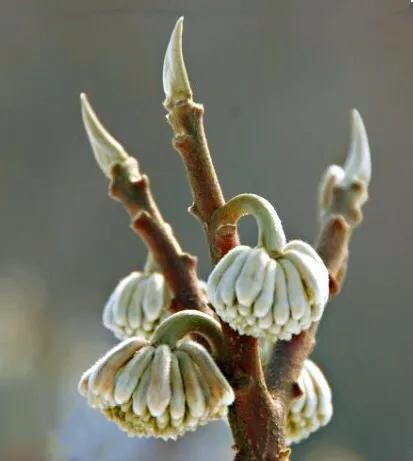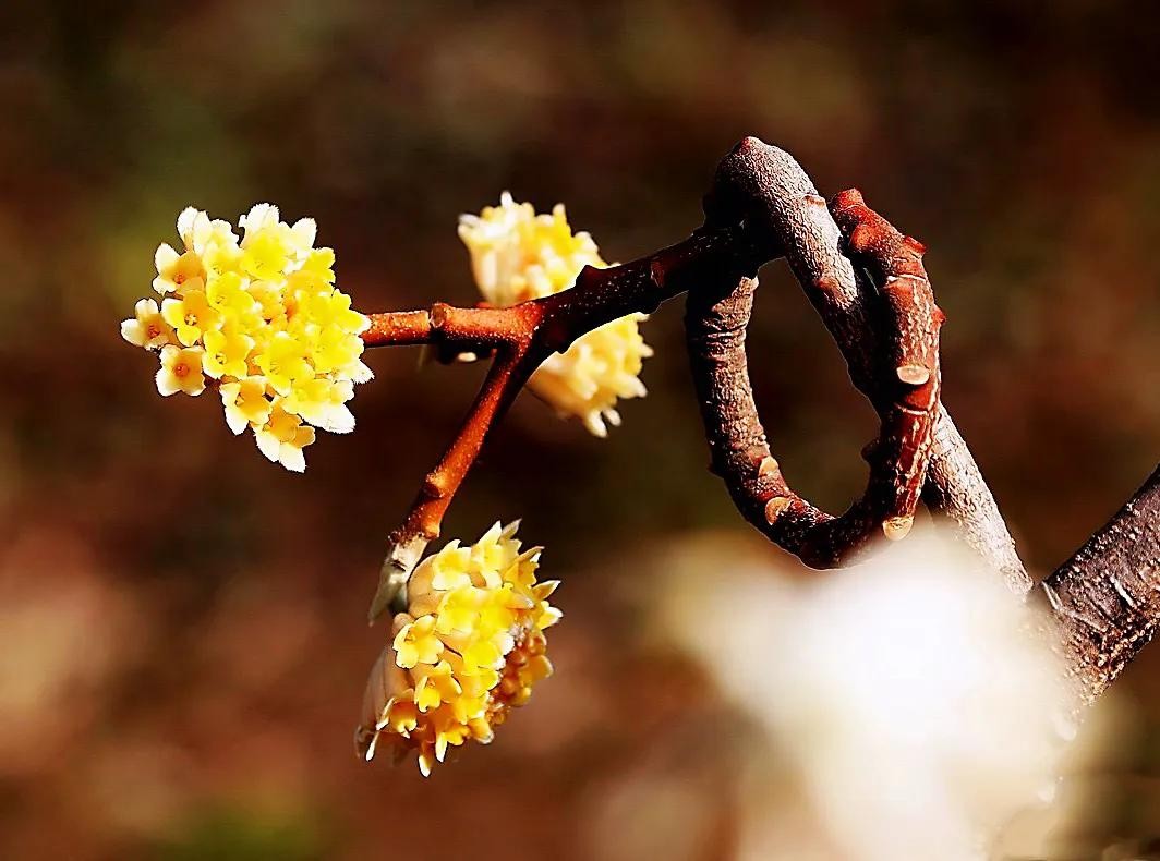 结香花·枝条柔软,可以任意弯曲打结;花朵芬芳馥郁,故名:结香