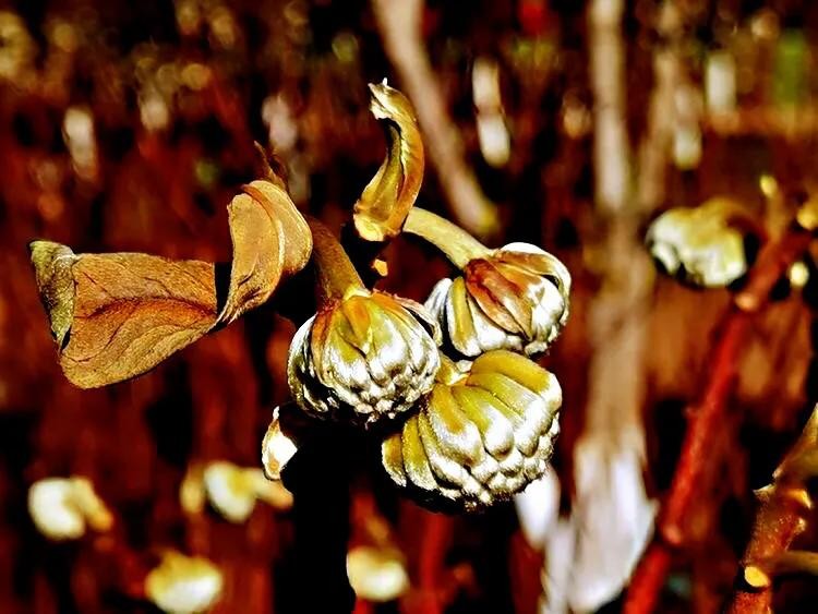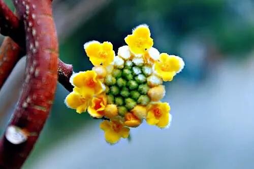 结香花又名"梦树",因为花在开放之前,所有花蕾都是低垂着的,像是在梦中一样,人们据此称其为"梦树"。