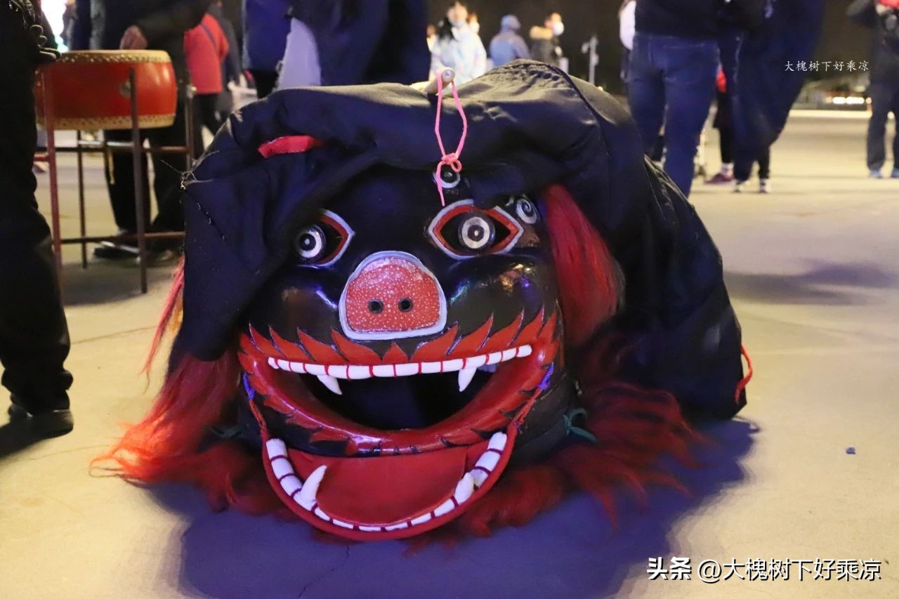 而在另外一处还有民俗表演,就是舞狮子,这里的舞狮子好像和别的地方不一样,别的地方舞狮子,都是狮子又蹦又跳的,而这里的两只狮子是憨态可掬的滑稽的表演。