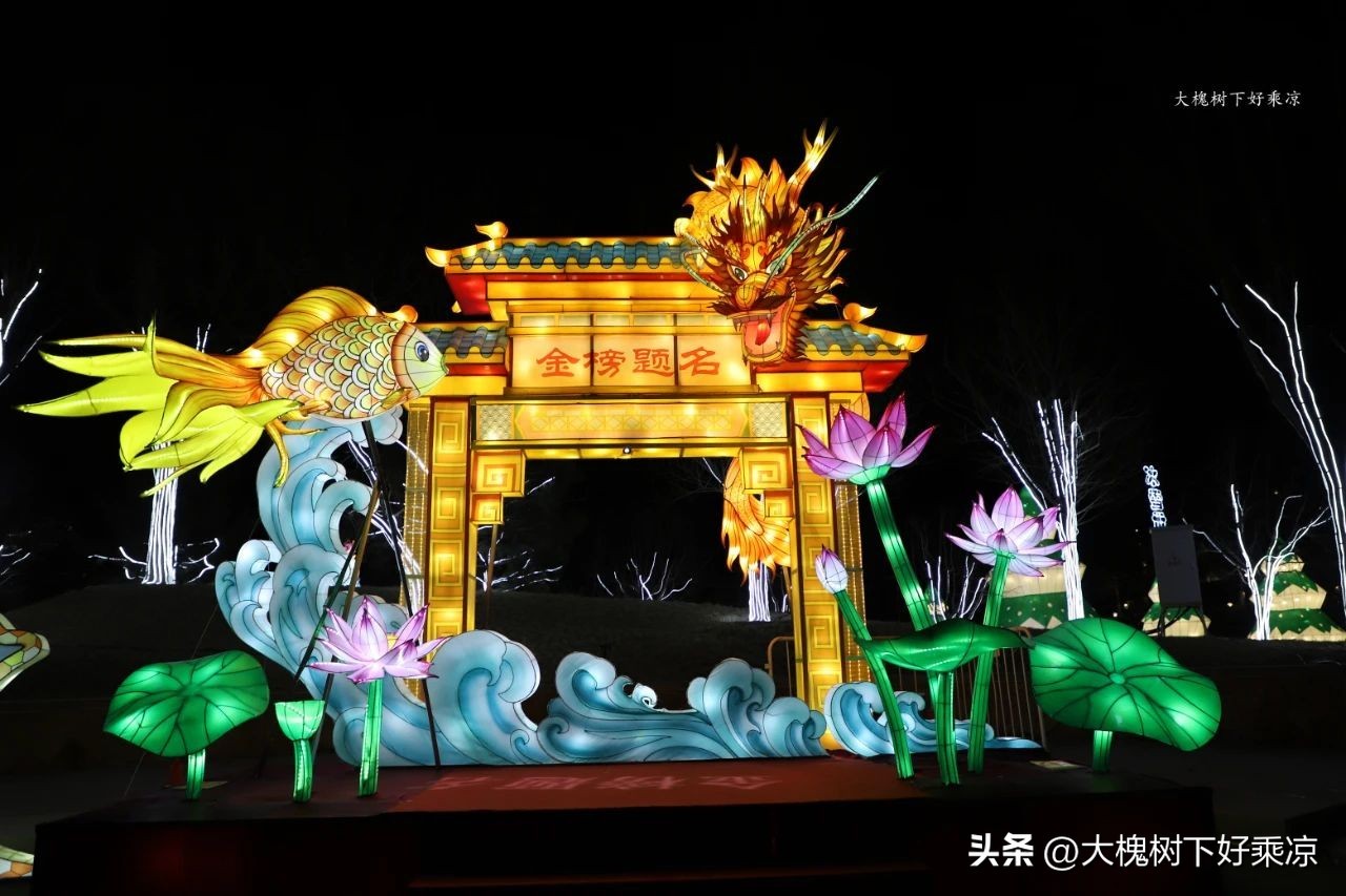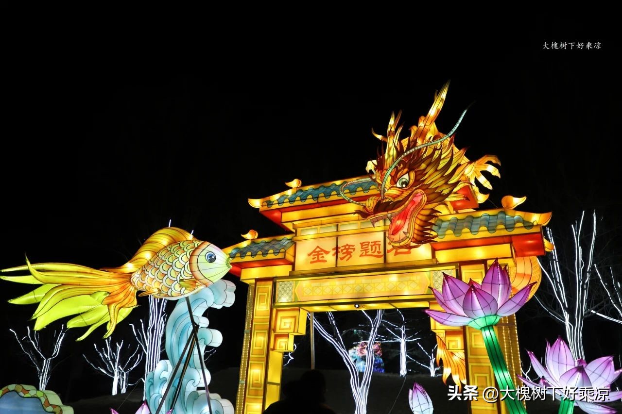 里面的花灯很多,其中就有一组鱼跃龙门,表达了美好的寓意。