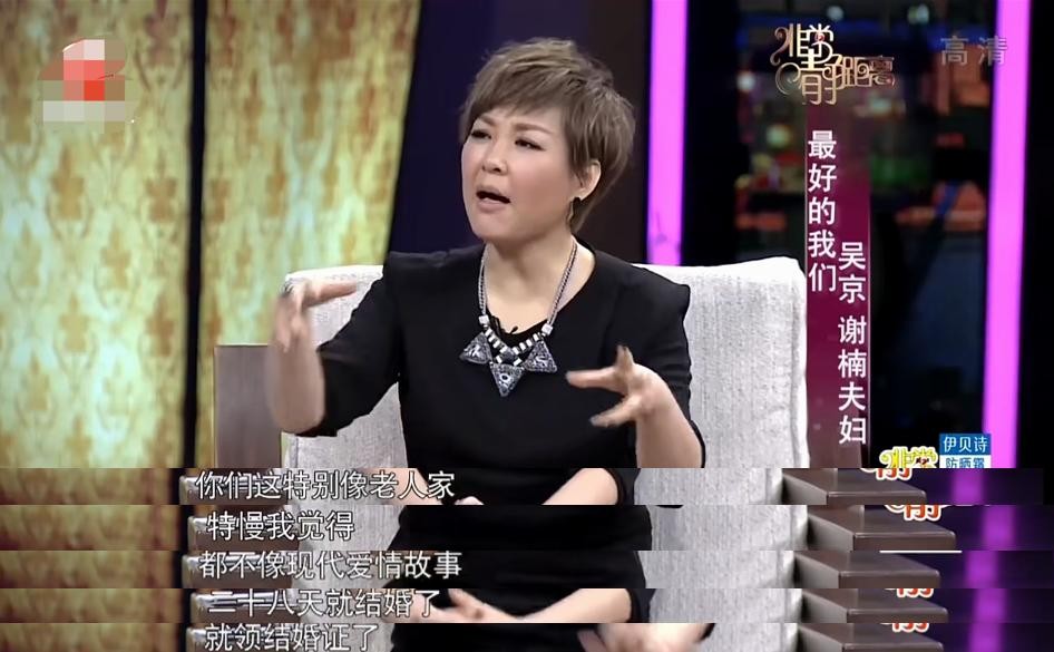 但是在节目中,当记者团问吴京希望自己未来的妻子是什么样的?吴京竟然斜过身子,直接了当地问谢楠:”你结婚了吗?”