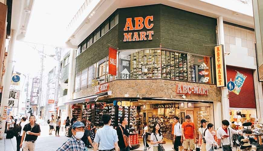 ABC MART・地址:大阪市中央区心斎桥筋2-8-3 / 大阪市中央区难波1-7-3・营业时间:11:00-21:00・交通方式:自心斋桥车站徒步约5分钟 / 自难波车站徒步约2分钟