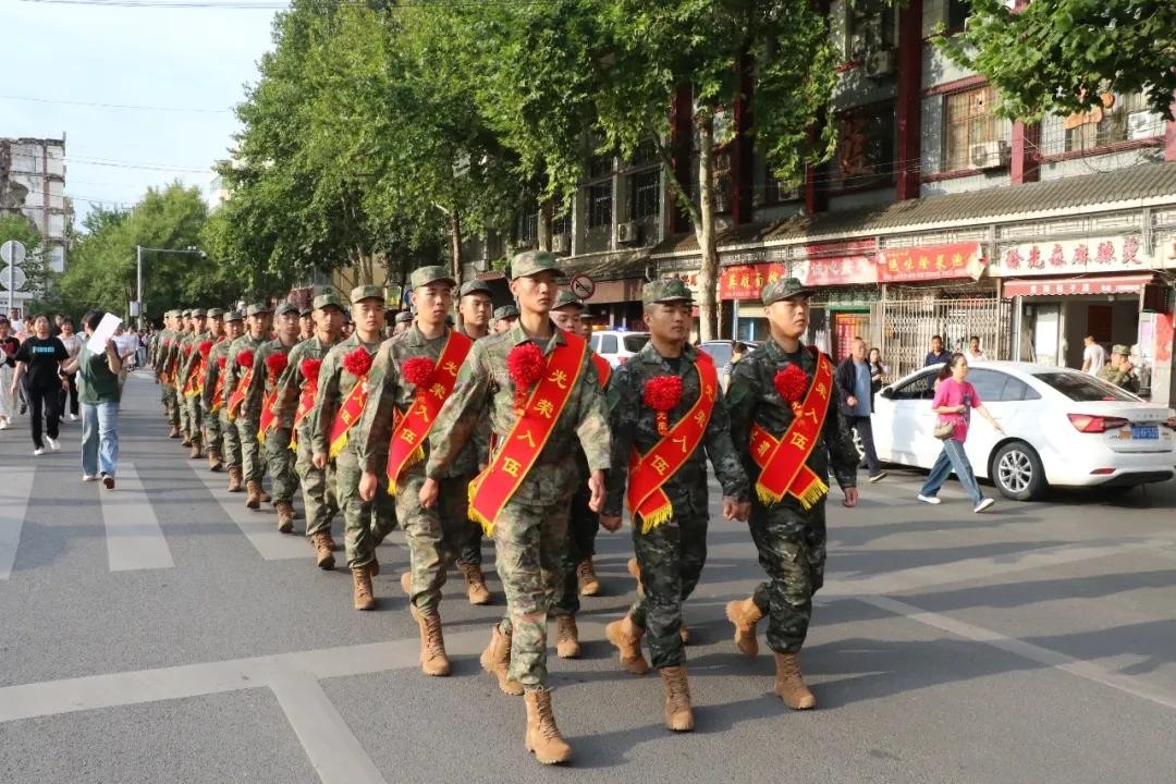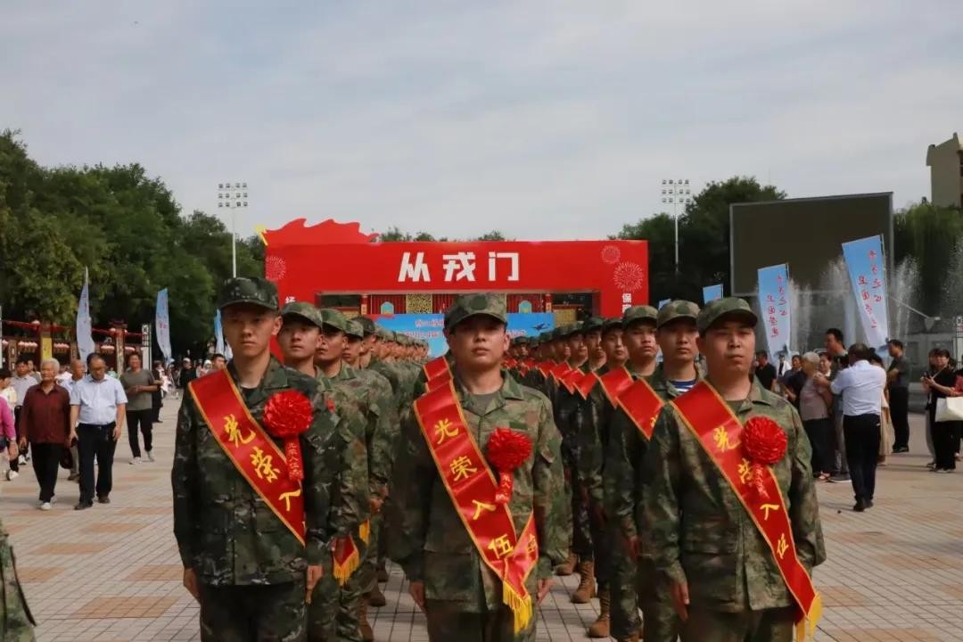 活动现场锣鼓喧天、彩旗飘扬、军歌嘹亮,新兵们身着崭新军装,肩披绶带,胸戴大红花,个个精神抖擞、英姿飒爽,他们即将告别家乡踏上保家卫国的新征程。