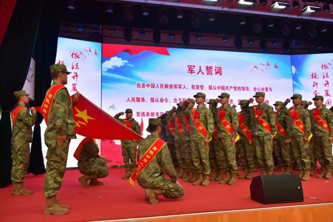 活动现场,新兵们高举右拳,在国旗下庄严宣誓。退伍老兵也纷纷加入,将活动推向高潮。