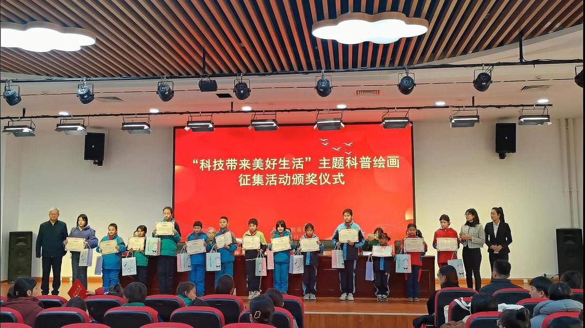 (“科技带来美好生活”主题科普绘画征集活动为获奖的学生们颁奖 朱歆柯穆 摄)