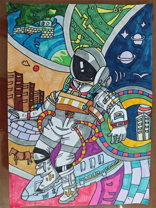 (“科技带来美好生活”主题科普绘画征集活动获奖的学生画作《悬浮空间》)