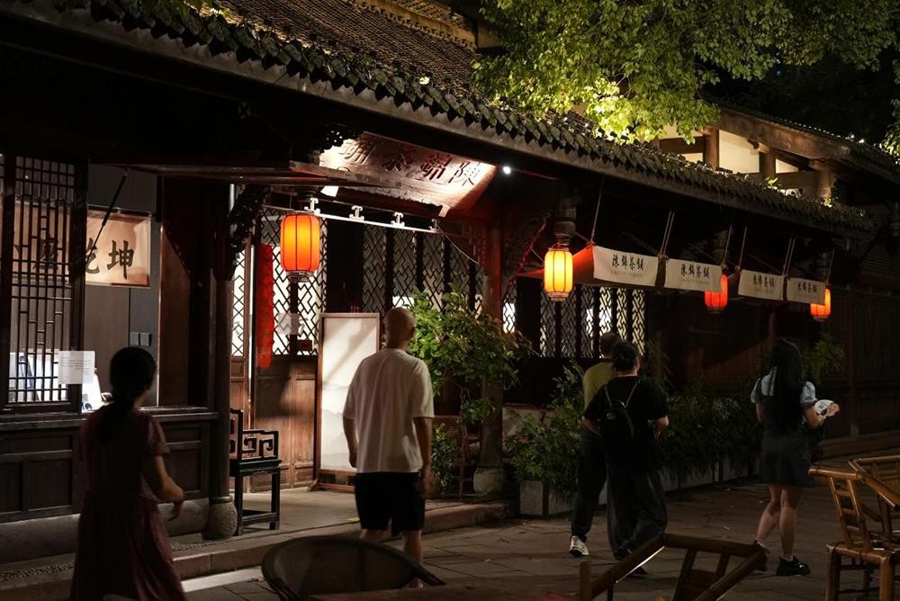 如今,夜经济的广大空间吸引着一批茶馆将营业时间向夜晚延伸。夜幕降临,成都人品茗谈天的热情并不消散。从历史传统中走来的成都茶馆,在城市的昼夜间持续迸发着活力。一昼一夜、躁动与静谧,成都这座城市从未打烊。
