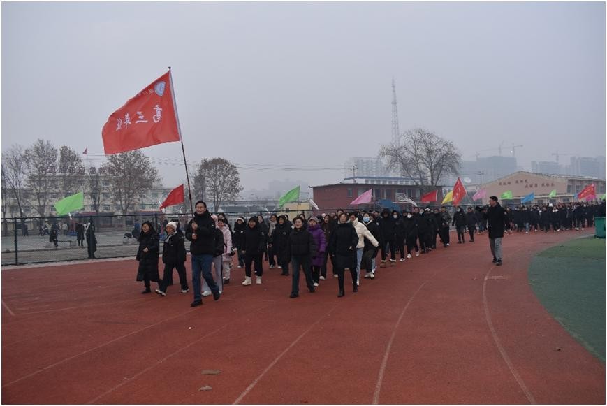 “预备,开始!”——啪!随着段波老师发令枪声清脆地响起,各队列按照先后次序斗志昂扬、激情满怀冲过起跑线。大家迎着寒风,队列齐整、口号响亮、尽显风采,大家在比拼体力和耐力的同时,也不忘互相鼓励、互相加油,享受着健步走带来的快乐,呈现出一派齐心协力、热情似火的动人景象。各队列矫健的身影构成了一道美丽的校园风景,展现了市油田一中教职工不甘落后、勇于拼搏的昂扬姿态。