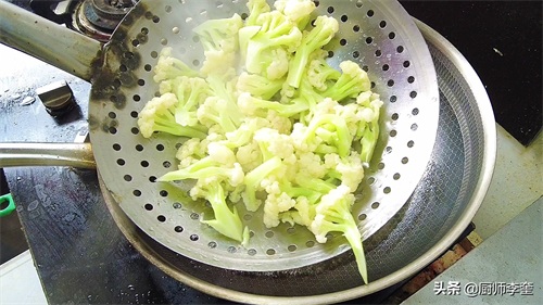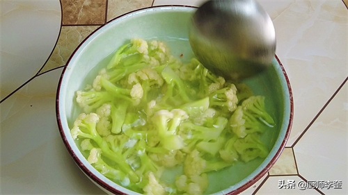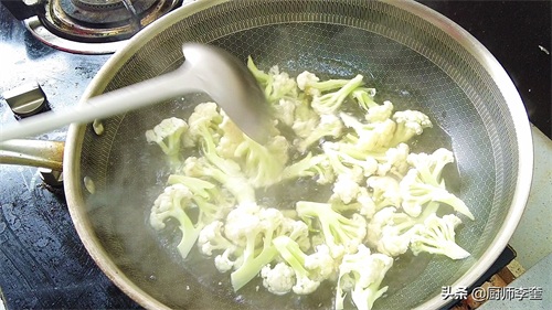 少许食用油,再把切好的菜花倒入锅中焯,水水开后煮至一分钟左右顺速用卤勺捞出,