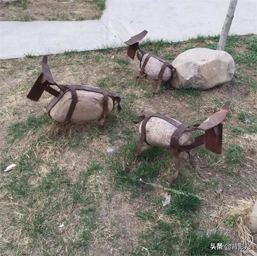 生活中许多废弃的东西,先别忙着扔,动动脑筋,没准也能废物利用,你看几块石头,几块生锈的铁皮,就拼凑出一个小羊在草地上吃草。