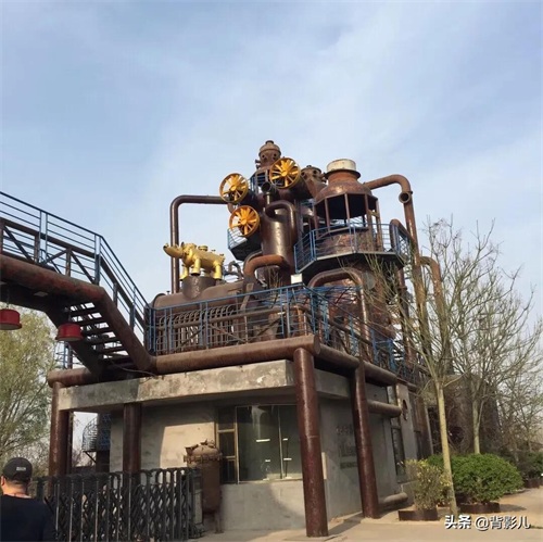 走进大门,便会发现这里走的主要是工厂复古风,工业风。整个厂房大院里都是这种重金属打造的景观。