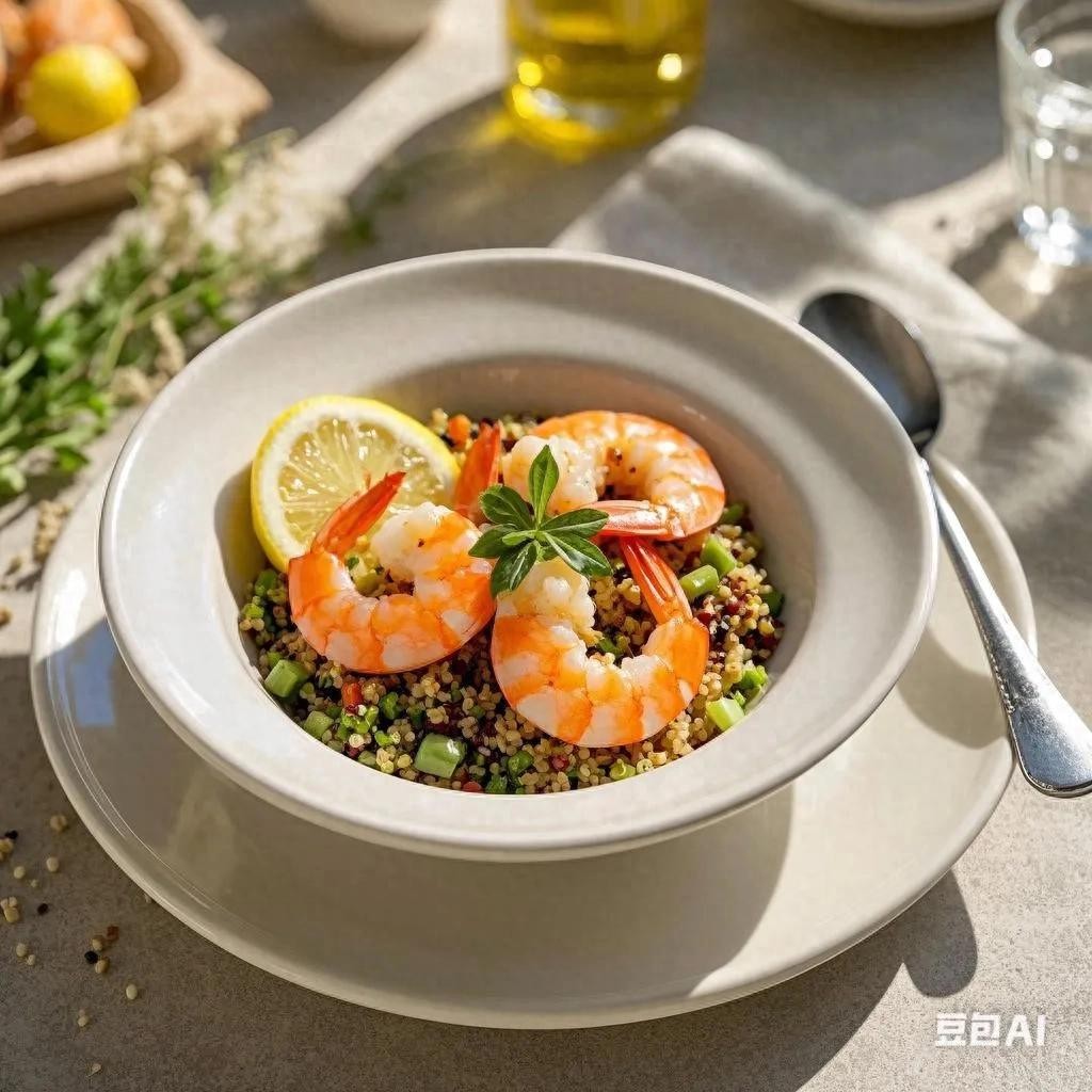 2025年,全球健康饮食榜单中**地中海饮食法**蝉联榜首,其以新鲜蔬果、优质蛋白和天然油脂为核心的特点,成为减脂抗衰的“顶流方案”。同时,弹性素食主义(Flexitarian Diet)因兼顾健康与可持续性,成为年轻人新宠。结合这两大趋势,本期推出一款**15分钟搞定的地中海风味藜麦虾仁碗**,颜值与营养并存,轻松刷爆朋友圈!