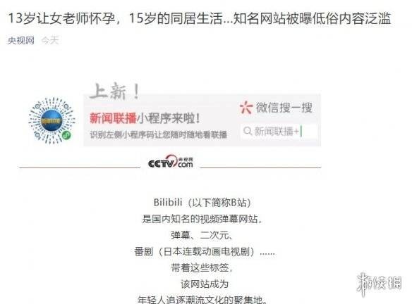 据央视网微信公众号消息,央视网今日发文《13岁让女老师怀孕,15岁的同居生活…知名网站被曝低俗内容泛滥》,文中提到多名市民投诉B站包含大量大尺度动漫和低俗内容,部分内容涉及到师生恋、乱伦恋等,引发家长担忧。
