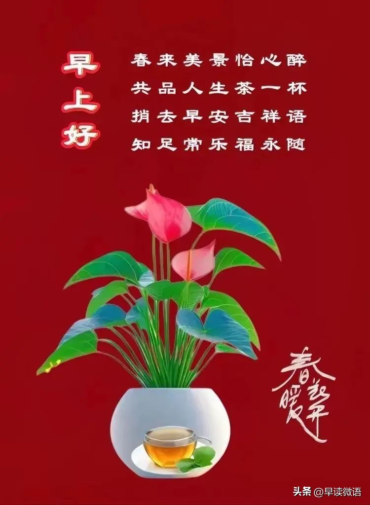 让清晨的旭日,送你平安吉祥。让春天的风景,送你鸟语花香。让我的问候,送你幸福安康!早上好!