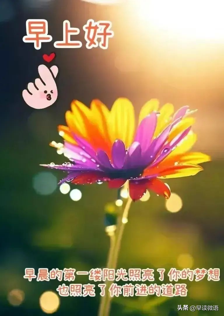 晨曦依旧,梦短情长,道一句早安,快快起床,收拾好心情,晒晒阳光,温暖一整天,祝福伴随你身旁,简简单单最幸福,早晨希望最光芒,时刻微笑牢牢记,新的一天新希望!