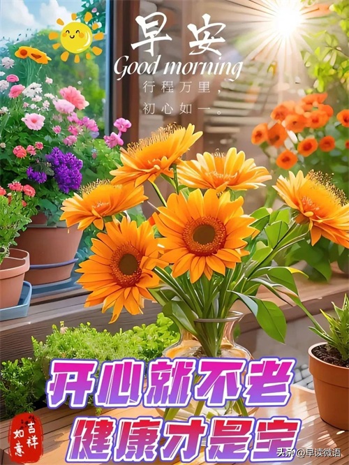 美好的祝福伴随朝阳升起,甜甜的问候在晨风里传递。让幸福快乐,健康平安与您同行!群主早安!珍爱自己,不要太累,保养身体,健康最贵欢歌笑语,开心就对不管年龄!健康万岁,早安