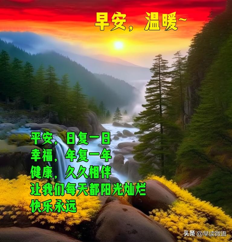 高高兴兴又一早,开开心心问个好,你好我好咱都好,平平安安才算好!