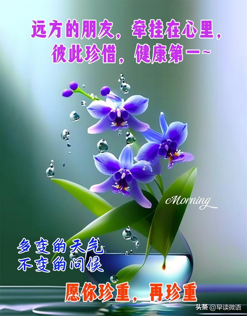 太阳无声,全球明;花开无声,四季景;文字无声,道真情;惦记无声,暖心灵;祝福无声,是真诚。晨早,是一束美丽的鲜花;牵挂,是一种情感的升华。送上我的祝福,寄去我的牵挂!愿我们都平安健康。早上好!