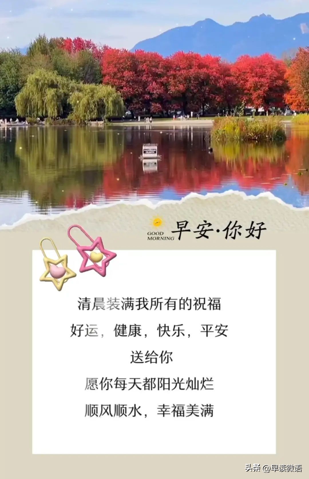 早上好!我将祝福,写上健康,填上快乐,加上好运,注上平安,附上吉祥,将好运作邮票,真情作邮戳,幸福做信封,放进甜蜜的邮筒,寄给你,祝你未来每天快乐。早安愉快~