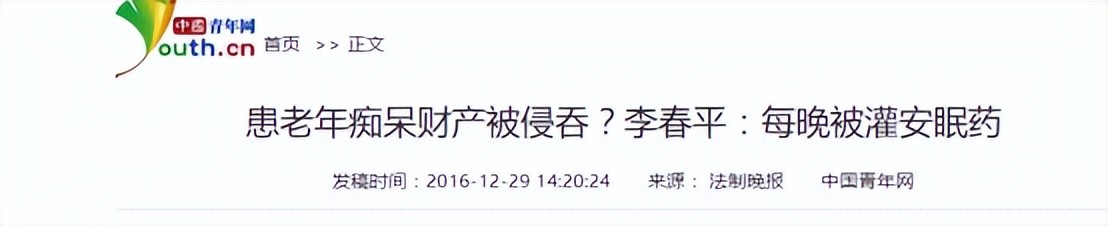 中国青年网:患老年痴呆财产被侵吞?李春平:每晚被灌安眠药