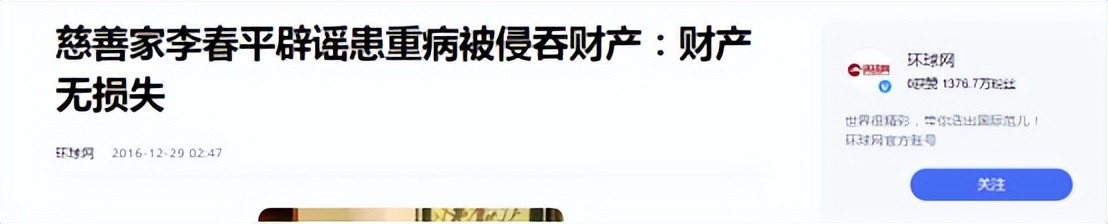 环球网:慈善家李春平辟谣患重病被侵吞财产:财产无损失