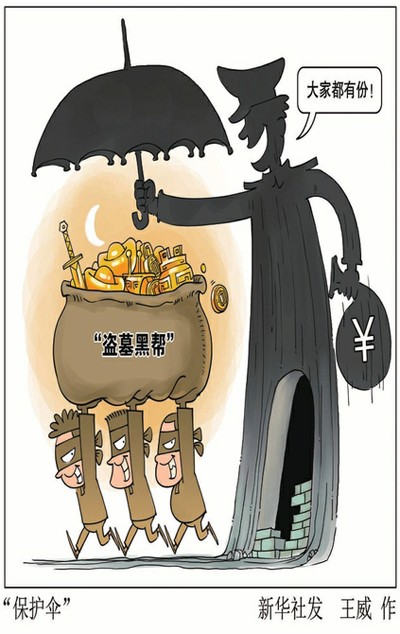 据调查,“盗墓黑帮”的崛起背后都有“保护伞”的踪影。为了保护众多的国家宝藏,闻喜县警方专门成立了文物犯罪侦查大队,但在巨额经济利益驱动下,一些保护文物的民警竟沦落成保护犯罪的“工具”。