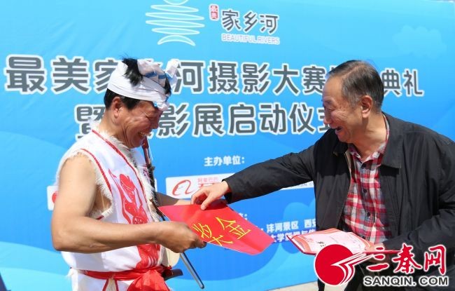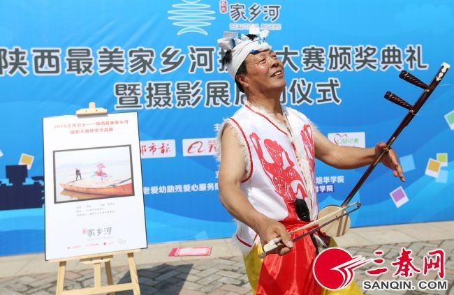 接过2000元奖金和证书时,一等奖获得者程明名说,“20多万人关注家乡河,摄影比赛活动远远超出了比赛本身。”程明名不仅是陕西省摄影家协会会员,也是咸阳市音协顾问。颁奖现场,摆放着他的获奖作品《为渭河母亲演出》。此时的他,“变身”作品中的主角, “走”出照片,穿上了演出服进行演出,不同的是,这次是为沣河母亲演出——板胡独奏曲《秦腔牌子曲》,好听的曲子赢来五次雷鸣般的掌声和叫好声,现场,有人跟着他的节奏吼起了秦腔。