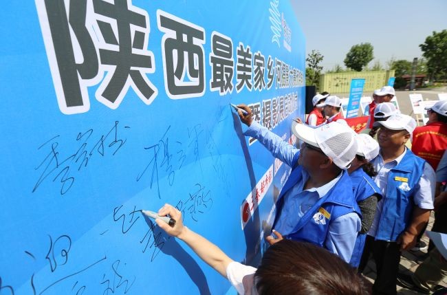 “八水绕长安,一幅多么迷人的画面,沣峪口、分水岭、沣河,哪个西安人没走过、没看过?” 西安尊老爱幼助残服务队队长温西顺,给大家带来原创诗歌朗诵《美丽而古老的沣河》。各位志愿在喷绘背景墙上签名。