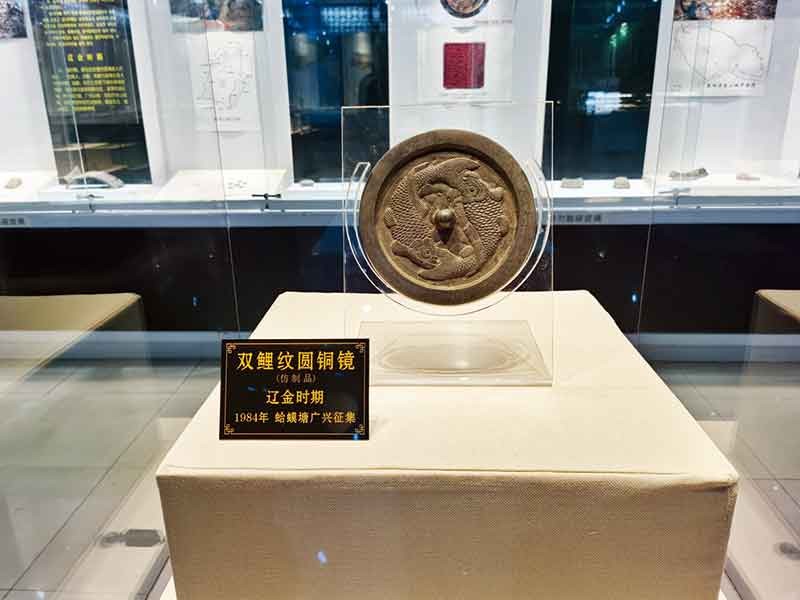 成立于2009年2月16日,总面积624平方米。陈列了汪清出土的精品文物共200余件。有化石、石器、陶器、铜器、铁器、骨器、玉器、瓷器等文物。镇馆之宝是“双鲤纹圆铜镜”,984年在汪清县蛤蚂塘广兴村出土。圆形、宽平缘、圆钮。镜面微鼓,光亮。镜背饰有两条大鲤鱼,对称旋游于浪波中,鲤鱼造型逼真,头尾追逐,衬以朵朵浪花,动感极强,其镜体重且大,为延边地区罕见,可称金代铜镜中佳作。在镜边缘面镌刻“河北东路转运司委差官匠三斤”13个汉字。直径20.2厘米,缘厚0.9~1.0厘米。依铜镜的形制、图案及镜缘刻款推知应属金代铸造铜镜。金是女真族建立的国家(1115-1234年),女真人把鲤鱼充作祥瑞的象征,因此,金镜中饰有双鲤鱼为题材。据文献载:“转运司”为官署名称,掌管盐铁、米粮、钱货的运输、储藏等。这面镜上的“转运司”即是金政府在诸京、路设置检验铜镜衙署之一。
