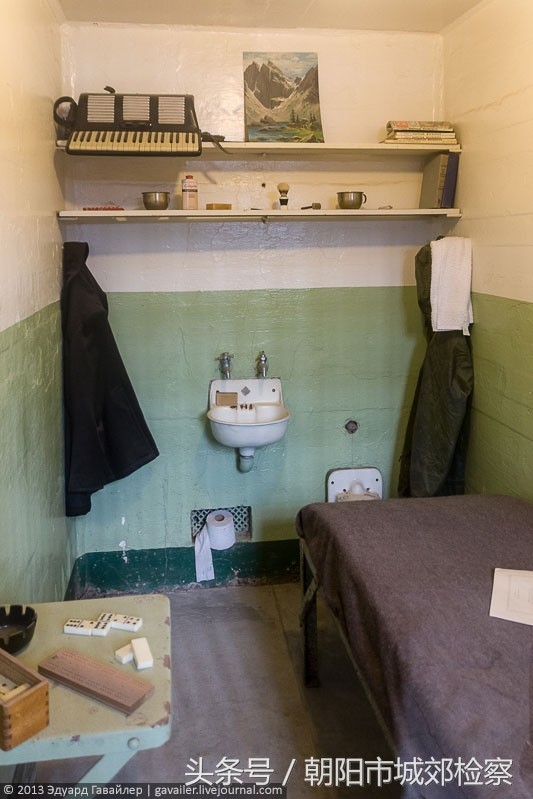 恶魔岛监狱每间囚室一模一样,宽5长9高7英尺。每人都有自已的小空间,单独的自来水洗手盆和坐式马桶。每个牢房还给一面四方形小镜子。每周有固定时间洗澡。每晚9点半熄灯睡觉。每个犯人入住后都会得到全新的被褥、枕头和枕套。