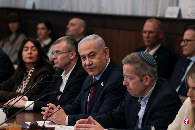 以色列战时内阁 10 日召开会议,右二为以色列总理内塔尼亚胡。图源:新加坡《联合早报》