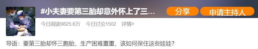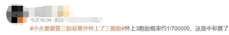 1 月 20 日,# 小夫妻要第三胎却意外怀上了三胞胎 # 话题登上热搜,引发网友热议。