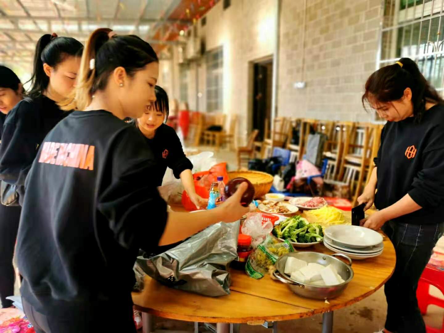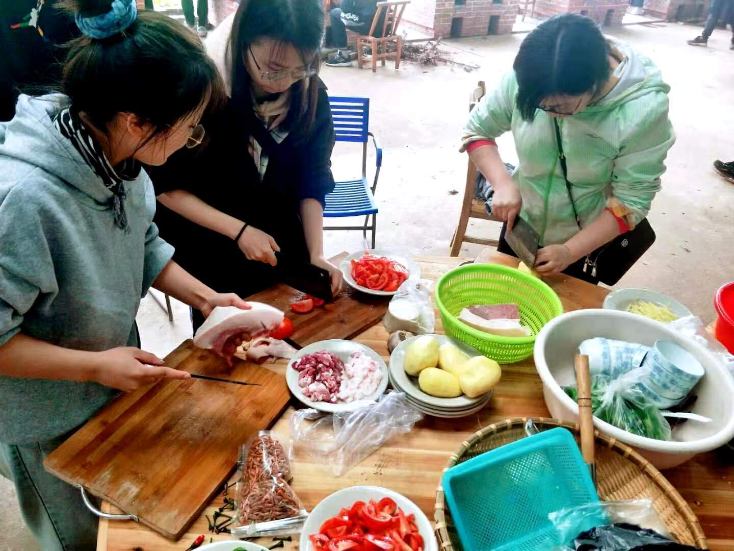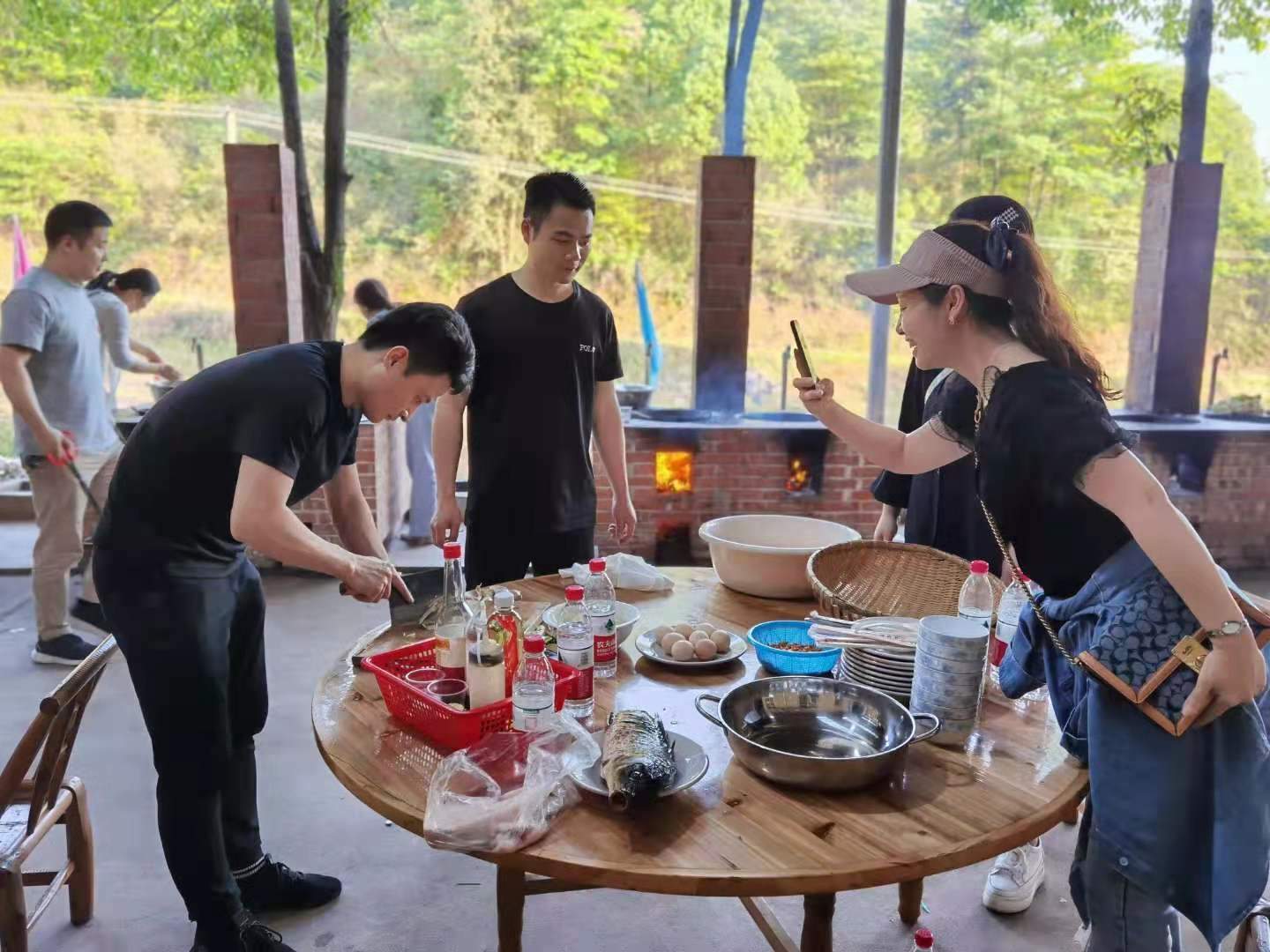 11:30-14:00 队员们分组准备野炊,开始各负其责,洗菜、杀鸡、杀鱼、生火、切菜等等,享受自己动手的柴火饭。(野炊食材农庄配好,菜地有菜的话也可以适当采摘部分蔬菜)