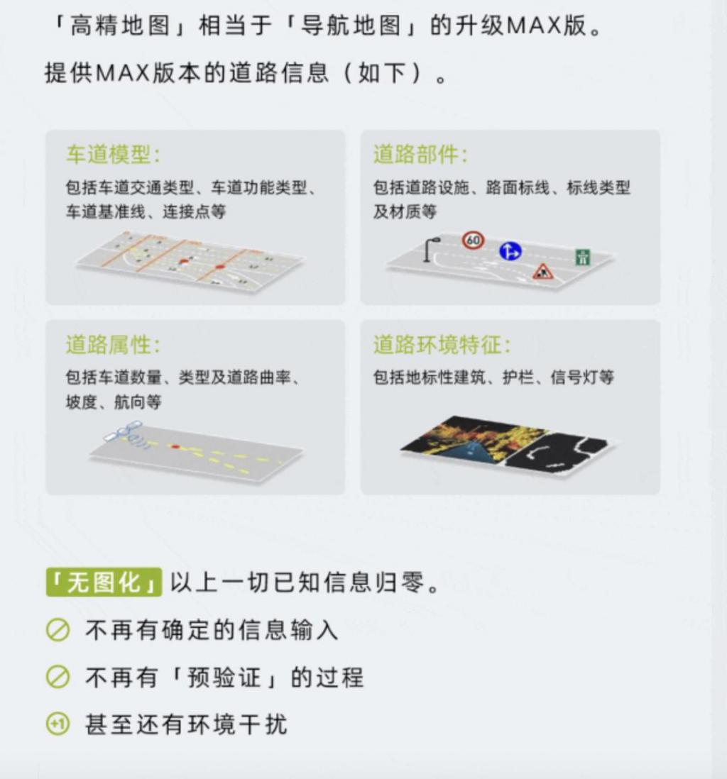 但高精地图的缺点也很明显:难以负荷的成本、鲜度不足,以及政策不确定性等。车企要快速推广城市 NoA 功能,从 1 个城市开通到 100 个城市,就不得不舍弃高精地图这把 " 拐杖 "。