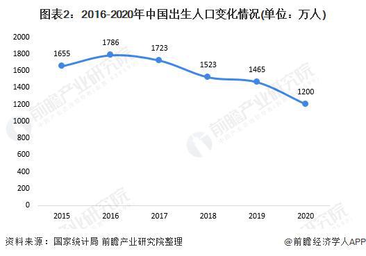 受到先后实施单独二孩和全面二孩的计划生育政策的影响,2016 年和 2017 年我国出生人口大幅增加,比政策实施前多出 100 多万人。到 2018 年,随着二孩效应逐步减弱,出生人口持续下滑,2019 年出生人口降至 1465 万人,2020 年进一步下滑至 1200 万人。