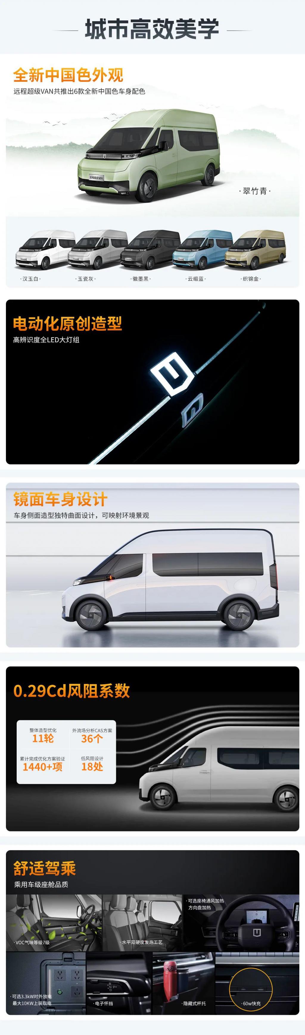 远程超级 VAN 定位是一款在城市场景使用的大 VAN(厢型车)车型,搭载电子怀挡、中控隐藏抽屉、踏步加宽防滑设计、60W 快充接口、3.3kW 220V 外放电系统等。