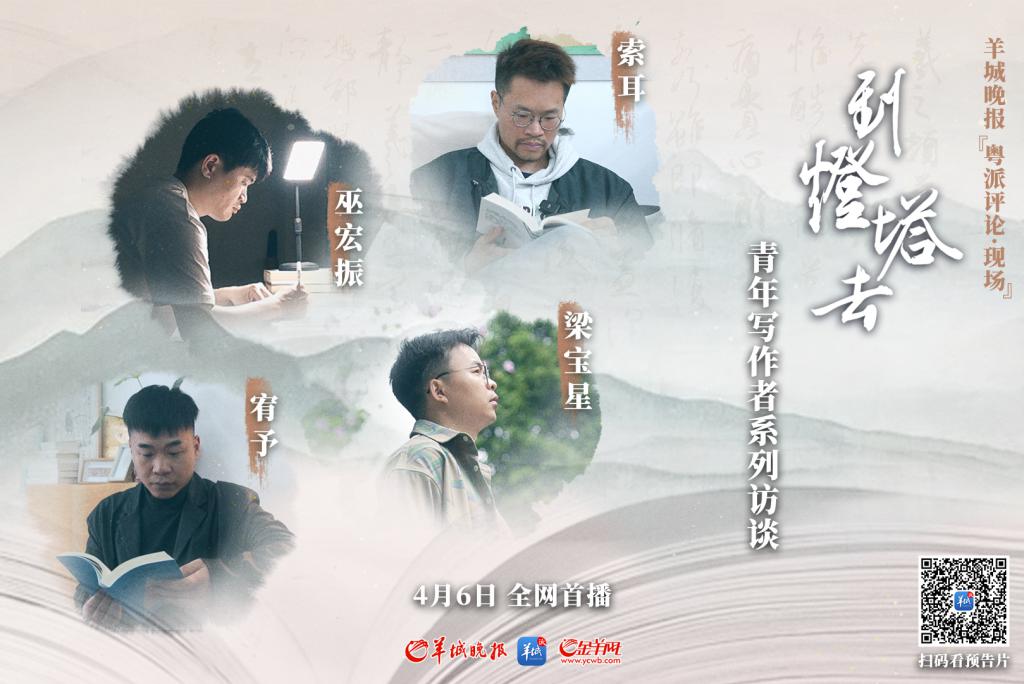 为了解背后的答案,羊城晚报精心策划摄制了" 粤派评论 · 现场 " 访谈节目《到灯塔去》,选择了四位青年写作者——索耳、梁宝星、宥予、巫宏振,用镜头走进他们的生活和写作。