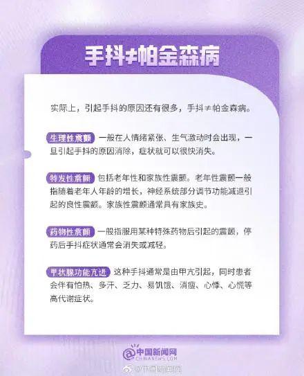 今年 4 月 11 日是第 28 个 " 世界帕金森病日 "。据统计,全球约有 450 万帕金森病患者。说到帕金森病的症状,相信大部分人脑海中第一反应就是 " 手抖 "。其实,帕金森病不仅是 " 手抖 ",一起来了解!