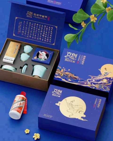这款茅台礼盒是专为中秋而生,礼盒包含200ML茅台酒一瓶、月下清影茶具套组和一个举杯邀明月·中秋特别版小茅手办一个。