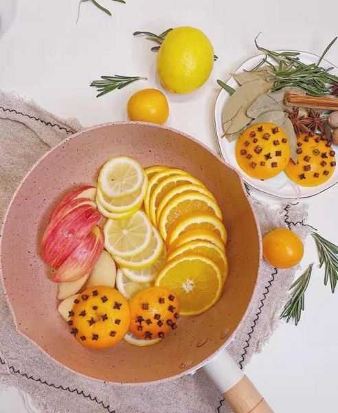 4.做法:将柠檬、橙子对半切开,用手将汁挤进锅里,苹果切片入锅。把丁香插在挤好汁的柠檬的表皮上,其它香料丢进锅里,倒入红酒(可根据饮用人数决定倒多少红酒),开火煮15分钟左右,小伙煮到冒泡就好;快煮好时加点白糖。煮好后装杯即可(可以自己加点装饰品之类的)。