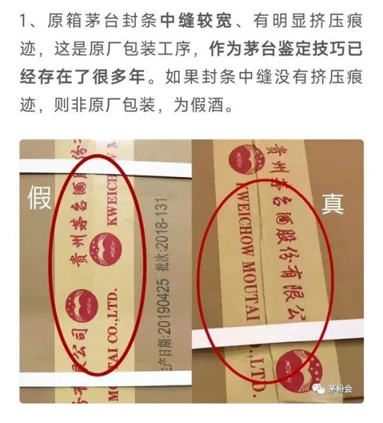 1真茅台的包装箱子是特别定制,边缘会有折痕