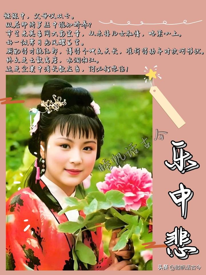 ●富贵又何为?襁褓之间父母违☞写湘云生于封建侯门富贵之家。所谓阿房宫,三百里,住不下金陵一个史,指的就是她家。但这又能怎么样呢?湘云在婴儿时期襁褓之间父母便去世了,她由叔叔婶婶养育。从小虽然富贵而无人关心,从小没得过温暖。终究是没有亲生父母的关爱!