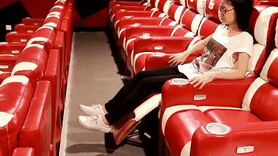 至潮将舒适做到了极致,在这每一个座椅都是电动沙发椅,你可以在观影时调节你的椅子,无论是坐着看、躺着看都可以。这家神奇的电影城让你可以用标准的“葛优躺”观影,也可以抱着搂着另一半,浪漫观影,还有更多舒适的观影姿势等你亲自来解锁。