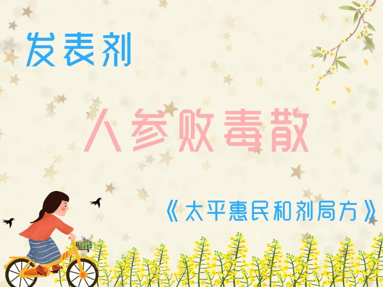 再来一遍:人参败毒/茯苓/草,桔梗/柴/前/羌/独/芎。薄荷/少许/姜/三片,四时感冒有奇功。去参名为败毒散,加入消风治亦同。