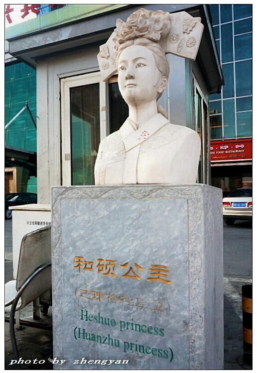 和硕公主,而且是还珠格格的原型。雕像的背面又有文字介绍,说和硕公主是为战将金泰而死。