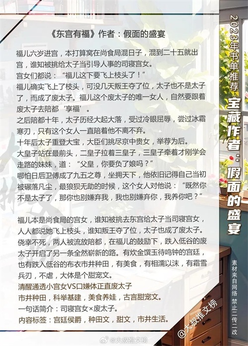 2、《东宫有福》作者:假面的盛宴【科举种田】