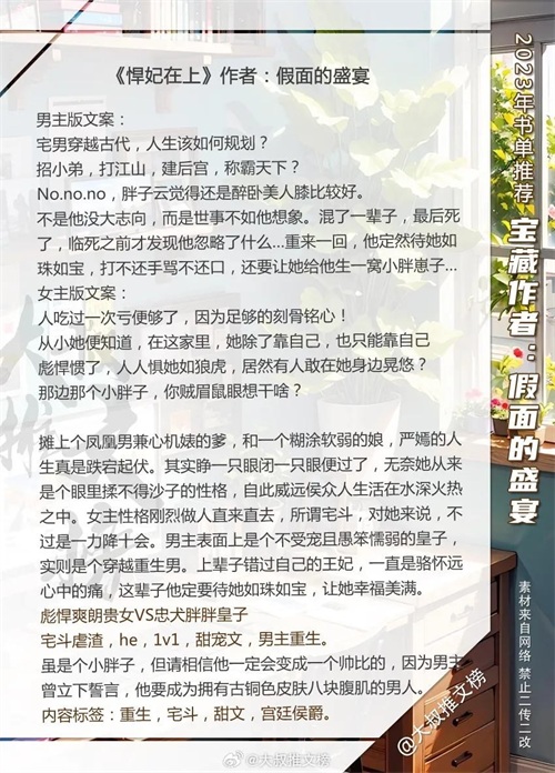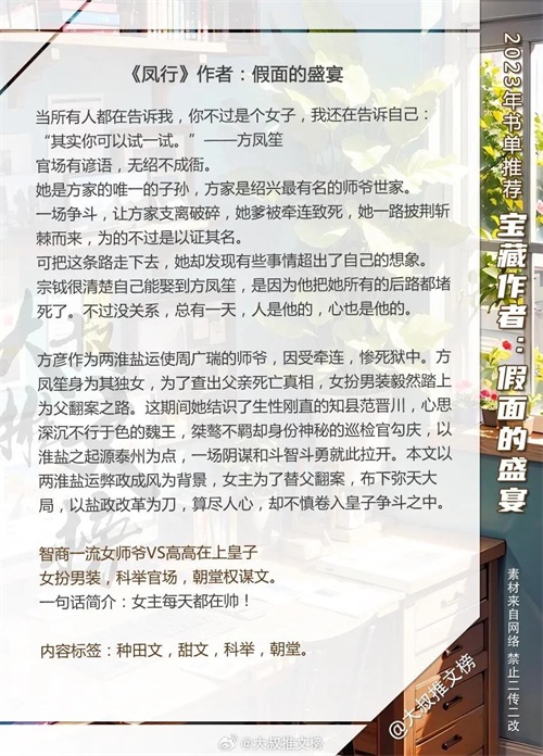 经典宝藏作者:假面的盛宴 言情文书单,基本都写古言,剧情精彩,看的贼上头!