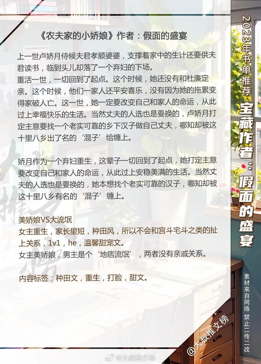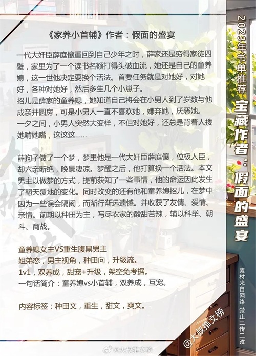 经典宝藏作者:假面的盛宴 言情文书单,剧情精彩,看的贼上头!