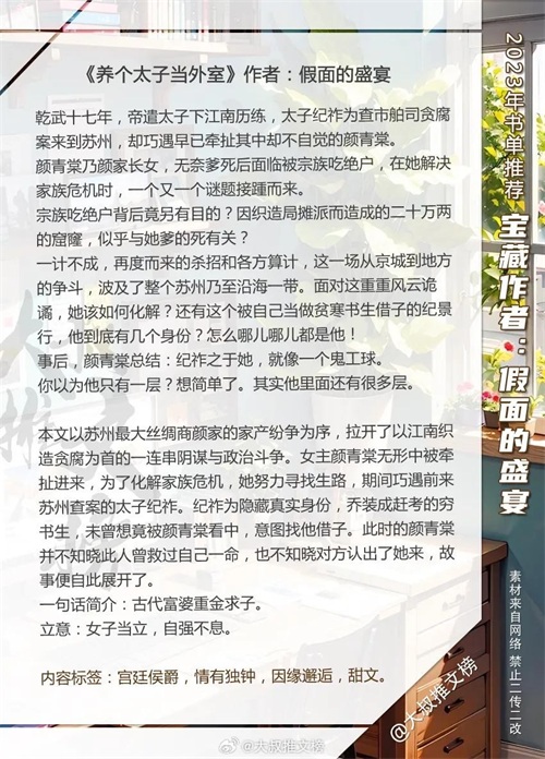 5、《养个太子当外室》作者:假面的盛宴【甜宠】