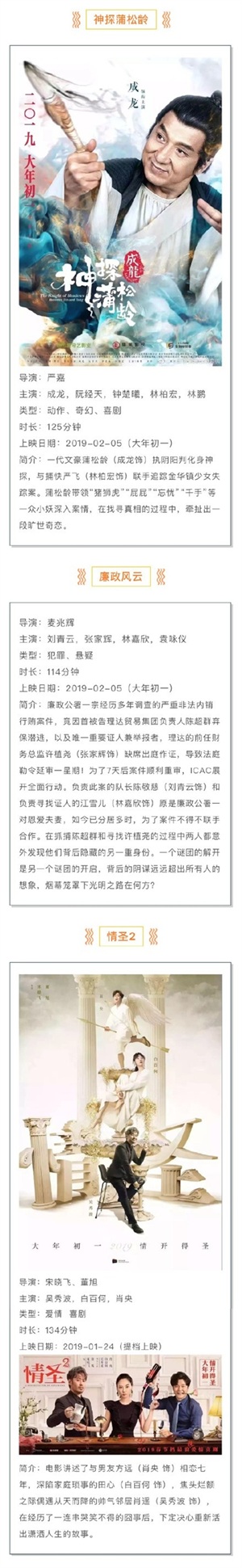 【2019春节档电影汇总!今年你打算看哪部?】 对于影迷们来说 春节就是一场电影的盛宴 而今年的春节档电影可谓是“神仙打架”! 喜剧、科幻、犯罪等题材应有尽有 在大年初一就已经挤爆排片了 一起去提前了解一下 2019年春节档电影
